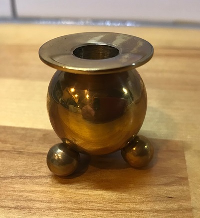 Cannonball Candlestick Pair Individually cast by our master bell makers in the Darlana Folklore District of Sweden. This sweet little candlestick is cast from pure bell bronze, making it feel heavier than its small size appears! Dimensions: 28mm (1 1/8") high, Use small diameter candles. Price: $55 for the pair |