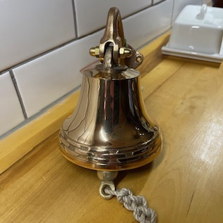 M306 | Large Farm Bell: 4 3/4 " diameter (120 mm) at rim, includes bracket. Bracket measurements: Wall side base is 2 3/8 inch across and 2 1/8 inch up & down. Bracket arm comes out from wall 3 5/8 inch to center of flange (tab at top of bell). | $325.00 |