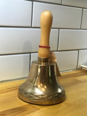 M307 | Hand Bell: 4 3/4" diameter (120mm) at rim, wooden handle. Natural or black handle | $325.00 |