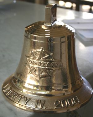 | Both the M18 and M19 bells can be lettered when they are cast. This is not engraving, but the letters are raised as they are cast as part of the bell when it is poured! An excellent way to commemorate your own boat, or a Naval career. We have cast many bells for US Navy and USCG ships. A custom bronze ships bell is a perfect retirement gift. See the online order form for pricing details for custom lettering your bell. | ||||||||